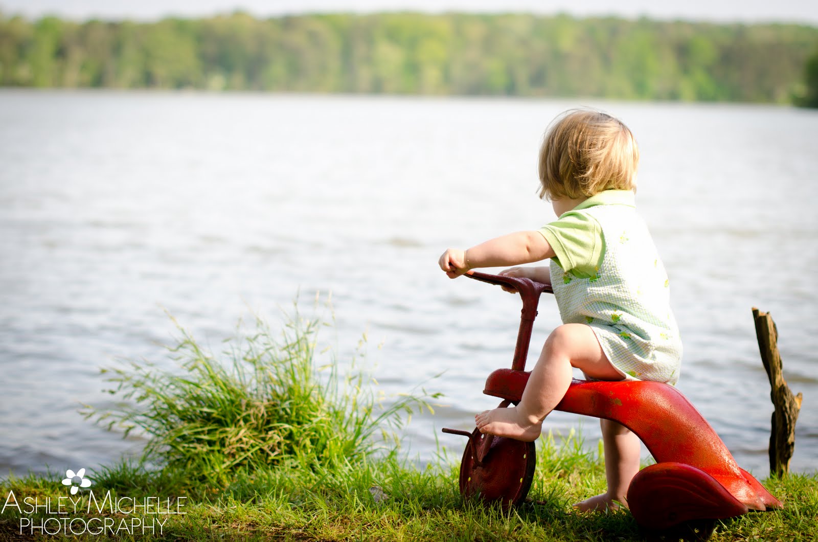 Whenever using a tricycle as a prop during a session, don’t ever put it too close to the water. Yes, the tricycle fell over into the edge of the lake while sweet little Will was on it. For awhile afterwards we had a sad, wet little boy on our hands. Luckily, mom had an outfit change planned anyway and the session went on! Good thing because we got some great photos afterwards.